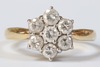 • An 18ct yellow gold 7 stone diamond cluster ring, the diamonds each approx. 0.15ct, size O, 4.7 grams