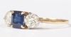 • An 18ct yellow gold 3 stone diamond and 2 stone sapphire ring, the 3 diamonds approx. 0.4ct, the 2 sapphires each 0.50ct, size O, 4.2 grams