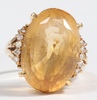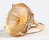 • An 18ct yellow gold oval citrine and diamond cocktail ring, the centre stone 22mm x 15mm, the 10 brilliant cut diamonds 0.17ct, size N, 10.7 grams