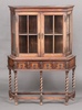 1162 A 1920's bleached oak Jacobean style display cabinet, the base fitted 2 drawers, raised on spiral turned supports with box framed stretcher 135cm h x 91cm w x 25cm d 80-120