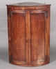 1197 A Georgian oak bow front corner cabinet with moulded cornice and enclosed by panelled doors with H framed metal hinges 105cm h x 74cm wide x 51cm d (together with a receipt dated 8th October 1952 for 22 pounds and 10 shillings) 40-60