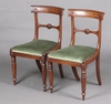 1227 A pair of 19th Century carved mahogany bar back dining chairs with drop in seats, raised on turned and reeded supports 40-60