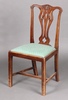 1228 An 18th Century Chippendale style mahogany dining chair with pierced vase shaped slat back and upholstered drop in seat, raised on square tapered supports 30-50