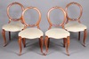 1220 A set of 6 Victorian style mahogany balloon back dining chairs, the seats of serpentine outline, upholstered in blue material 40-60