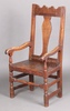 1240 A 17th Century and later oak slat back open armchair with solid seat, raised on turned and block supports 80-120
