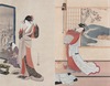 | 1065 | After Eishi Hosada, "Enchantress", 20th century colour print, label verso, 30cm x 20cm, together with another similar print after Shunsho Katsuwaka, "Women of a Shop", 30cm x 20cm, both within matching stained wood frames. | 50-70 |