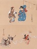 | 1066 | After Chosun Miyagawa "Manzai", 20th century colour print, label verso, 30cm x 20cm, together with another similar print after Itcho Hanabusa, "The Dance Nunozarashi", 30cm x 20cm, both within matching stained wood frames. | 50-70 |