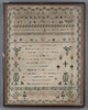 A sampler by Charlotte Harris "aged nine years" with letters of the alphabet and numbers in horizontal formation to the top with lines of crowns and coronets beneath, above a central panel of religious verse, enclosed in a floral border, dated 1844 Cromer, 41cm x 32cm, within a Hogarth style frame, together with another sampler by Rebecca Mason "aged nine years", dated 1878.