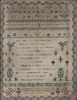 | 1073 | A sampler by Charlotte Harris "aged nine years" with letters of the alphabet and numbers in horizontal formation to the top with lines of crowns and coronets beneath, above a central panel of religious verse, enclosed in a floral border, dated 1844 Cromer, 41cm x 32cm, within a Hogarth style frame, together with another sampler by Rebecca Mason "aged nine years", dated 1878. | 60-90 |