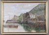 • Circle of Herbert Edward Butler, Polperro Harbour, Cornwall, early 20th century watercolour, 41cm x 60cm, within a painted and gilt wood frame.
