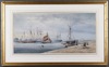 • Circle of George Standfield Walters (1838-1924), Harbour Scene with Sailing Vessels, late 19th/early 20th century watercolour, 33cm x 68cm, within a gilt frame.