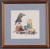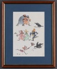 • **Quentin Blake (b.1932), Arabel with Mortimer the Raven, ink with watercolour, 15cm x 15cm, within a stained wood frame. Note: this work was used as the front dust jacket cover illustration for the Jackanory Stories edition "Tales of Arabel's Raven" published by the BBC and Jonathan Cape in 1974. **Please Note - Artists Resale Rights may be payable on this lot.