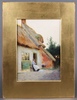 Claude Strachan (British, 1865-1938), Lady outside a Thatched Public House, and a Lady outside a Thatched Cottage, a pair of late 19th/early 20th century watercolours, one signed, each 26cm x 19cm, unframed within gilt mounts. £200-300