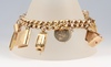 • A 9ct gold curb link bracelet with padlock clasp, 18cm, 14.9g