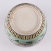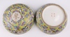 A late 19th Century Chinese circular yellow bowl and cover, the lid decorated storks amidst branches the base with 4 character mark, on a wooden stand 28cm