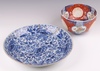| 749 | A 19th Century Japanese Imari porcelain bowl with panelled decoration 22cm (a/f and riveted) and an 18th Century Chinese blue and white floral patterned charger 38cm (with repair) | 40-60 |