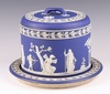 | 774 | A Wedgwood blue Jasper Ware cheese dome decorated classical figures 20cm h x 29cm diam. with an associated base | 40-60 |
