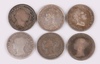 | 307 | Six GB Queen Victoria sterling silver four pence coins, various dates. Grade F-VF. S.2913 | 30-50 |