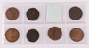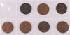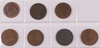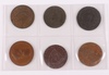 | 319 | Three copper penny tokens, 1838, Trade and Navigation, used in the Americas; and Four copper coins, 1813, for Essequibo and Demerary (now Guyana), two half stivers and two stivers. Grade F-VF. KM9,10a | 40-60 |