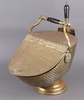| 510 | A Victorian embossed brass lidded coal scuttle, raised on a circular base with turned ebony handle and shovel 43cm h x 33cm w x 45cm d | 40-60 |
