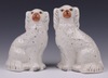 A near pair of 19th Century Staffordshire figures of seated Spaniels 23cm and 22cm