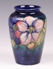 | 609 | A Moorcroft blue ground clematis pattern vase, base impressed Moorcroft and with paper label Potter to the Late Queen Mary 18cm | 60-80 |