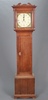 An 18th Century 30 hour longcase clock, the 27cm square painted dial with Roman numerals, minute indicator and calendar aperture, complete with pendulum and key, contained in an oak case 202cm high