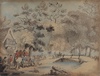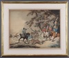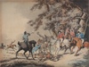 Thomas Rowlandson (British, 1756-1827), "The Refreshment", "The Dinner" and "The Death of the Fox", three etchings with aquatint and hand-colouring on laid paper, published by J. Harris 1787, each 39cm x 51cm, all within matching gilt frames.