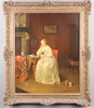 Alexis van Hamme (Belgian, 1818-1875), "The Letters" (A Lady in an Interior Setting reading a Letter with a Spaniel at her Feet and a Cittern on the wall beyond), oil on panel, signed and dated 1874 recto, Christie's stencil and titled label verso, 55cm x 44cm, within a gilt composition frame with foliate strapwork and centre and corner crestings. Provenance: Christie's 12th June 1996, lot no.214.