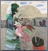 **Arthur Easton (1939-2024), Abstract with Figure, Bird and Plant in a Landscape, oil on canvas, signed and dated 1986, 71cm x 66cm. ** Please note, Artists Resale Rights may be payable on this lot