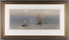 Frank Sherwin (British, 1896-1985), Railway Bridge over the Medway, with Rochester Castle, Kent, 20th century watercolour, signed, 31cm x 43cm, within a painted wood frame.