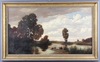 Mellinger, British School,? Landscape with Pond and Trees, 20th century oil on board, artists name and dated 1927 to label verso, 44cm x 80cm, within a gilt frame.