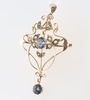 | 20 | A 9ct gold pearl and garnet set pendant, 6cm, 2 grams gross | 40-60 |
