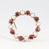 | 22 | A 9ct gold garnet and pearl set circular brooch, 2.5cm, 4.25 grams gross | 60-80 |