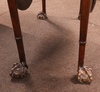 An Irish 18th Century oval mahogany drop flap gateleg dining table, the edge with carved floral and trellis decoration, raised on tapering supports with carved studded collars, webbed talon ball and claw feet 74cm h x 118cm w x 45cm w when closed x 144cm when open £500-700