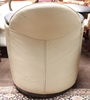 A 1920's Empire style show frame tub back chair, the seat and back upholstered in white material, raised on turned supports 77cm h x 65cm w x 48cm d