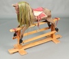 | 1022 | A wooden rocking horse covered in faux fur, raised on a pine base 97cm h x 182cm l x 41cm w | 50-75 |