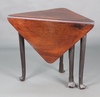 | 902 | A Georgian mahogany drop flap gateleg corner table, raised on carved club supports 70cm h x 80cm w x 87cm d | 80-120 |