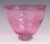 | 670 | Julia Linstead, a pink etched glass vase decorated lilies, signed, 18cm x 23cm | 40-50 |