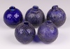 | 675 | Five Victorian Northern British Glassworks, Perth, moulded glass shooting target balls 'glass pigeons' in cobalt blue, each 7cm diam | 300-500 |