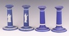 | 650 | A pair of Wedgwood blue Jasper ware candlesticks decorated classical figures 16cm, 1 with firing damage to the top moulding, a pair of ditto plain blue candlesticks 15cm | 30-50 |