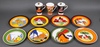 | 648 | A set of 8 Wedgwood Bradford Exchange limited edition Clarice Cliff plates - Red Roof, Poplar, Orange House, Blue Lucerne, Farm House, House and Bridge, Orange Roof Cottage and Fantastique Mountain, 20cm, with certificates, 2 Official Edition Age of Jazz Clarice Cliff mugs and a Times Past Clarice Cliff style mug | 70-90 |