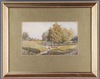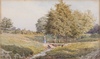 British School, Landscape with Pond and Farm, and Landscape with Figure on a Bridge, a pair of 19th century watercolours, one with obscured signature (possibly Fred Shaw), each 13cm x 22cm, both within gilt frames.