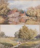 | 804 | British School, Landscape with Pond and Farm, and Landscape with Figure on a Bridge, a pair of 19th century watercolours, one with obscured signature (possibly Fred Shaw), each 13cm x 22cm, both within gilt frames. | 40-50 |