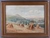 Gilbert Sharp, Landscape with Ploughed Field and Figures Shooting Birds, early 20th century oil on board, signed, 25cm x 35cm, within a gilt frame.