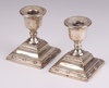 | 156 | A pair of silver Georgian style stub candlesticks raised on square supports with reeded decoration, 9cm h, Birmingham 1929 by S Blanckensee & Sons Ltd | 50-75 |