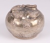 | 158 | An embossed Chinese silver jar and cover in the form of a fruit 6cm h, base marked T900, 50 grams | 80-120 |