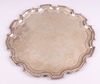 | 177 | An Indian silver salver with bracketed border, engraved inscription "To Brigadier and Mrs M H Cox, with best wishes from the members of Iscon Club Durgapur India July 1959", by Cooke & Kelvey, 30cm, 799 grams | 700-900 |