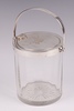 | 182 | A cylindrical cut glass preserve jar with swing handle and patented silver rising lid, London 1904, by the Goldsmiths & Silversmiths Company, 9cm | 40-60 |
