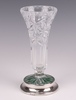 | 184 | A cut glass trumpet shaped vase with circular silver base Birmingham 1977 by W I Broadway and Company 18cm | 30-50 |